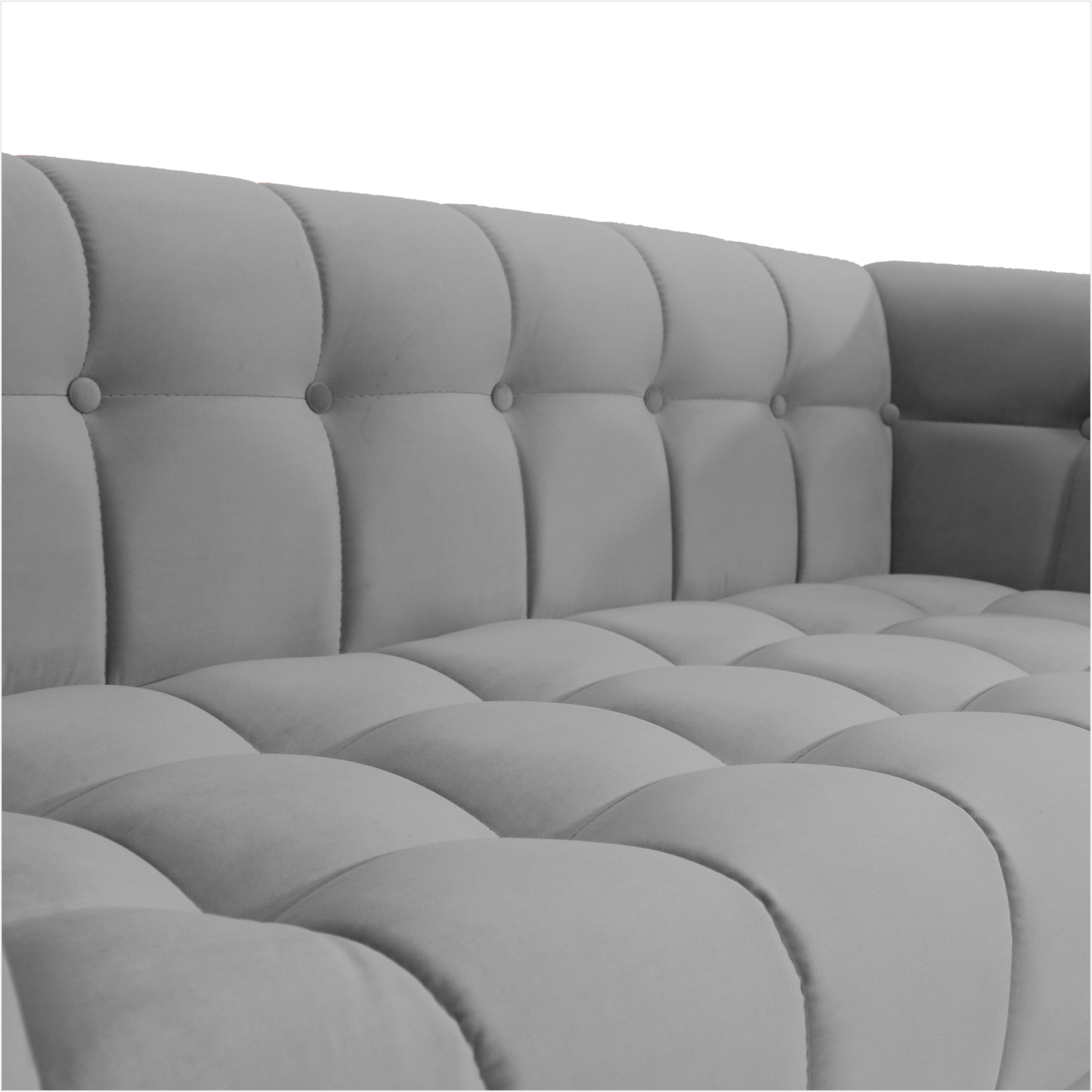 Sofá con detalles cuidosamente elaborados, como las elegantes costuras y el capitoné del asiento, brazos y espaldar. La perfección de las formas y una impecable confección ponen en evidencia el elevado nivel de pericia adquirido por la empresa a lo largo de los años.