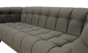 Sofá con detalles cuidosamente elaborados, como las elegantes costuras y el capitoné del asiento, brazos y espaldar. La perfección de las formas y una impecable confección ponen en evidencia el elevado nivel de pericia adquirido por la empresa a lo largo de los años.